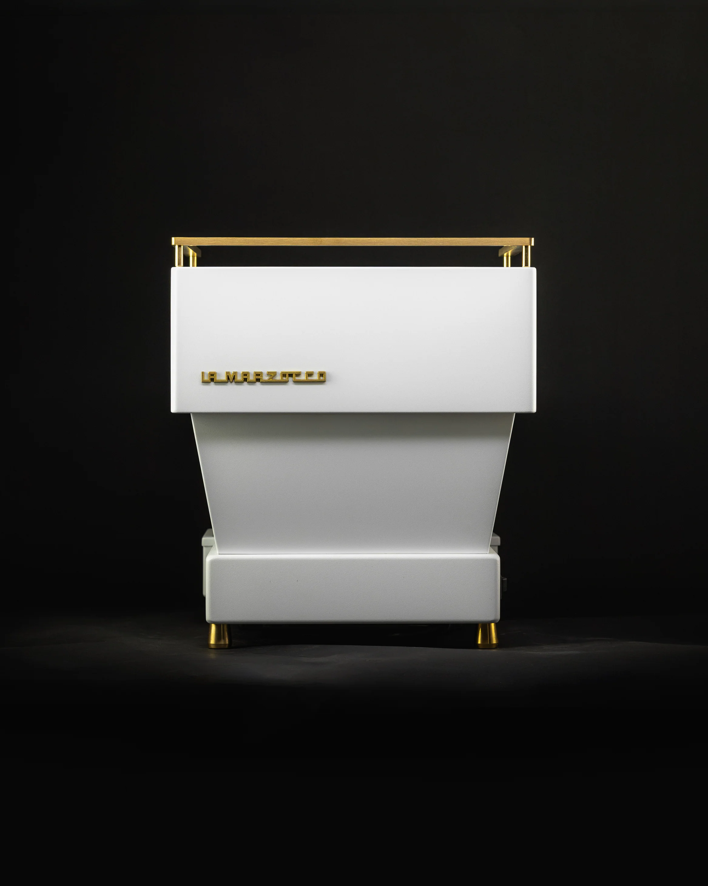 This preowned, professionally-serviced 2020 La Marzocco Linea Mini features a white body, solid walnut touch points and 23-carat gold highlights.